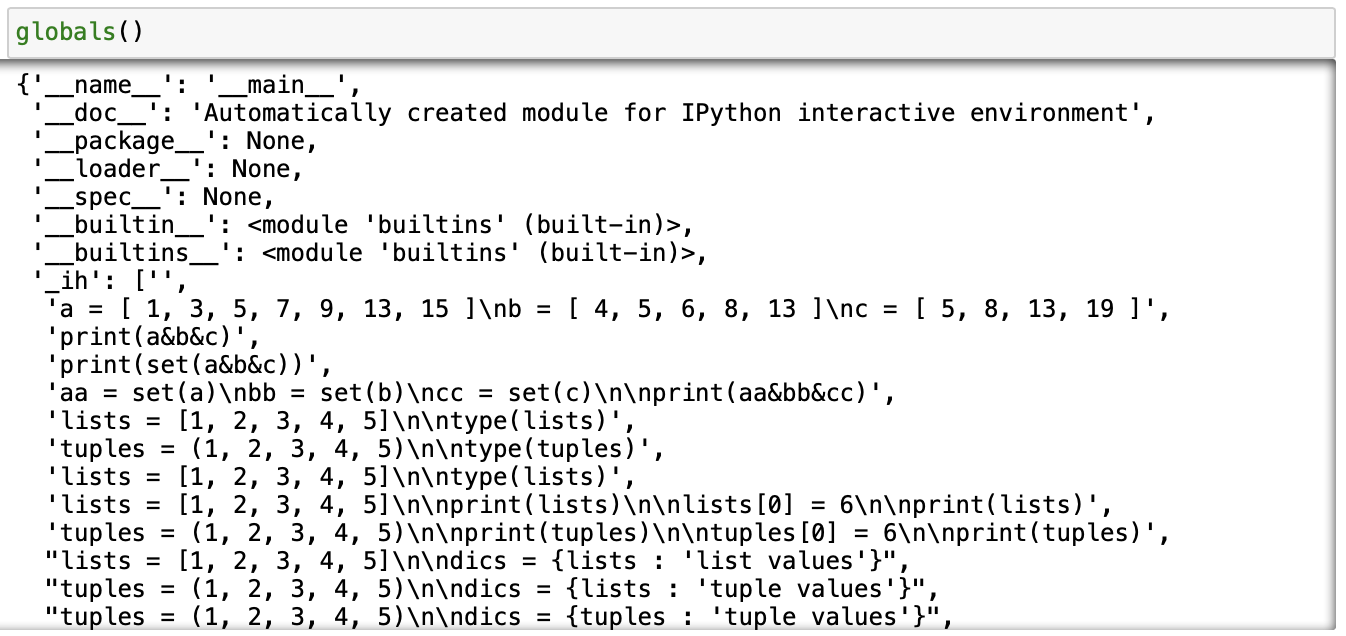 현재 모듈 네임스페이스를 구현하는 사전을 반환, 전역 변수 테이블