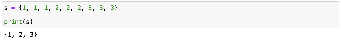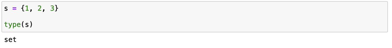 딕셔너리와 비슷하게 중괄호를 통해 사용하지만 key 가 없다. 값만 존재한다.