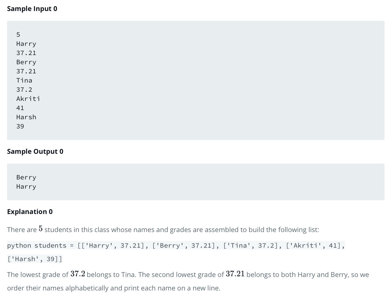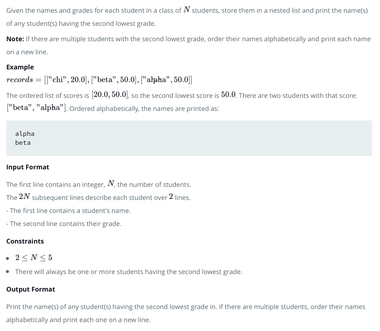 문제에서 원하는 결과는 두 번째로 낮은 점수를 가진 학생을 이름순으로 정렬해서 출력하는 것이다.