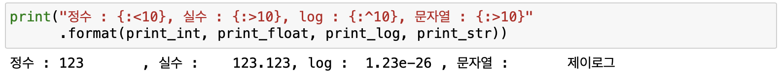 그리고 format() 함수를 통해 정렬도 해줄 수 있다.
