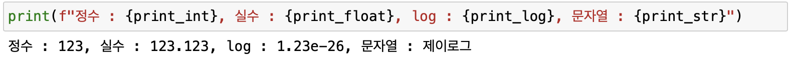 파이썬에서 출력할 때 원하는 타입에 맞게 그리고 원하는 형태로 출력하기 위해서 f-string 을 사용해서 출력할 수 있다.
