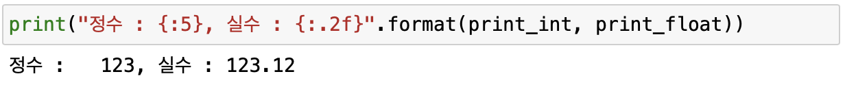 format() 함수는 콜론(:) 을 사용해서 뒤에 자릿수나 소수점 갯수를 입력해줄 수 있다.