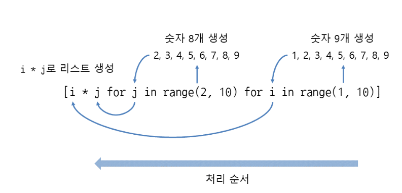 반복문을 통해 리스트 컴프리헨션의 동작 순서는 다음과 같다고 한다.